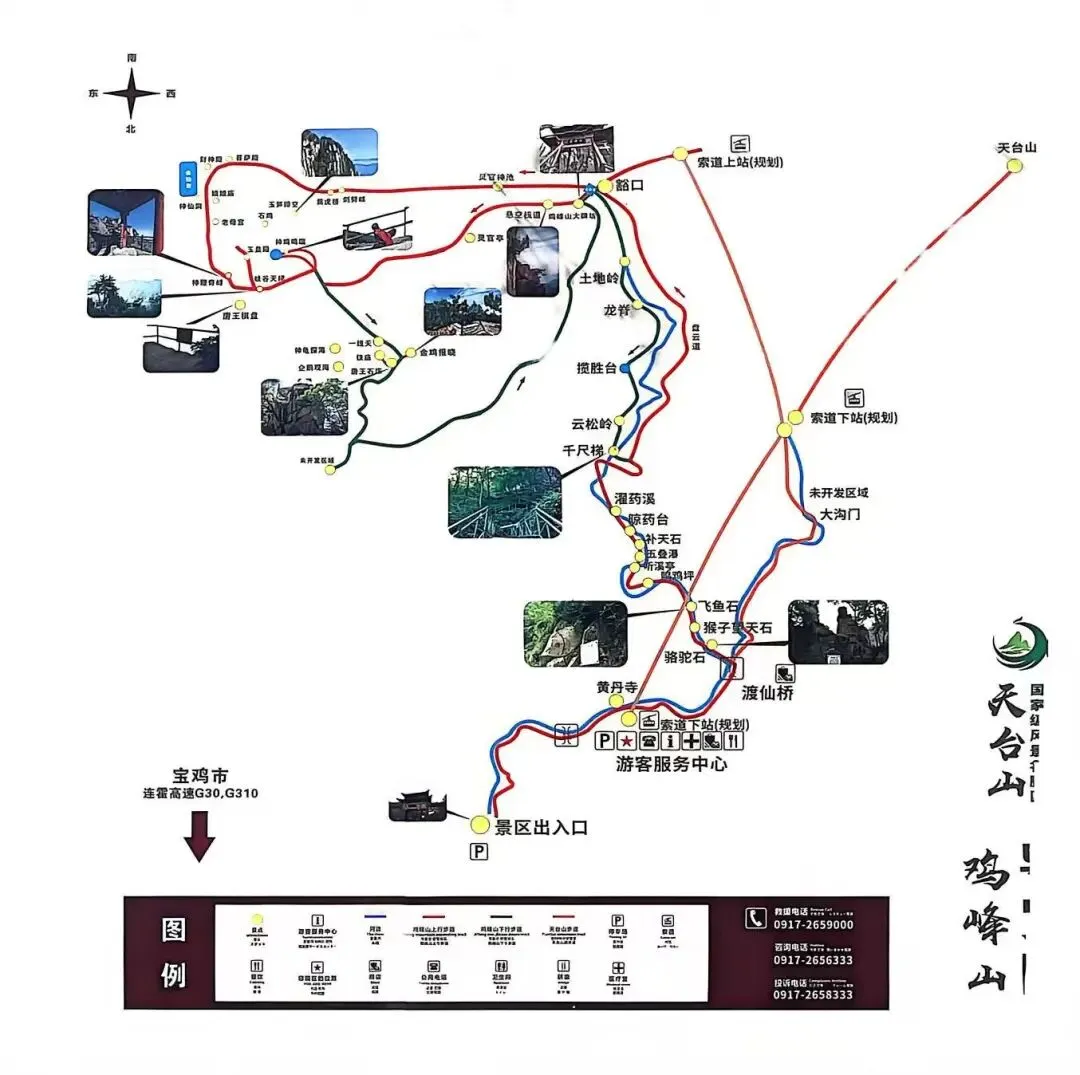 景区售票处→各奇石→千尺梯→鸡峰山大门→各个鸡