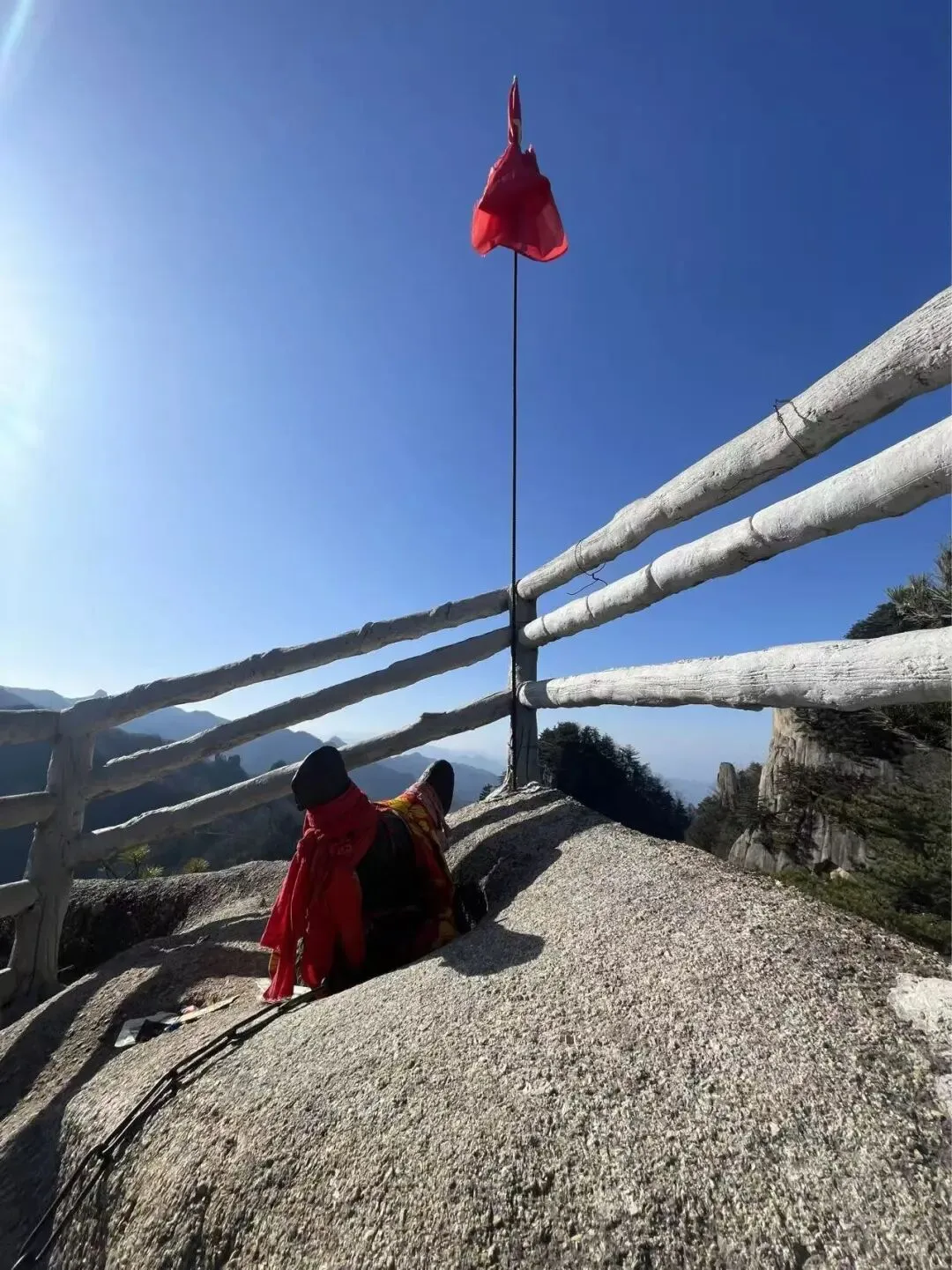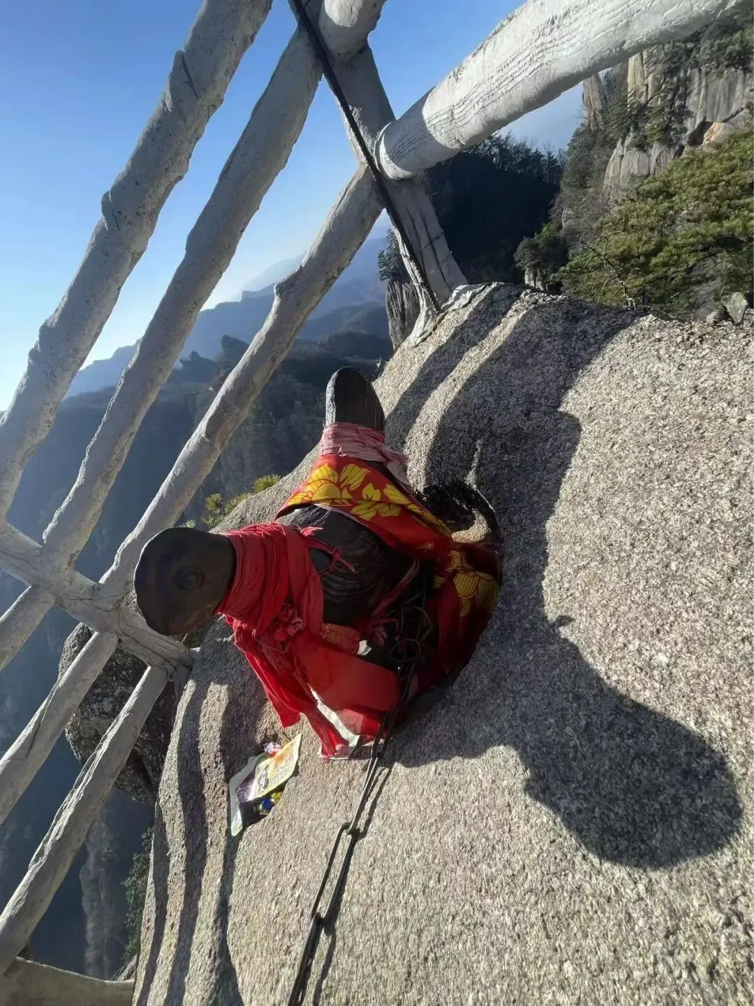 ❇️它铸造于清道光二十九年(1849年),重约七八十斤,是鸡峰山的标志性铁塑,也是景区的核心打卡点之一。 照片里的位置和场景,正是它所在的南峰之巅。