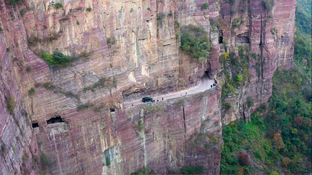 据公开资料显示,郭亮挂壁公路位于新乡市辉县沙窑乡郭亮村,是万仙山风景区的核心组成部分。公路横亘于海拔1700米的悬崖上,全长约1250米,高5米,宽4米,由郭亮村村民在1972年至1977年间,于无电力、无机械的条件下历时五年多开凿而成,被誉为“当代愚公”的杰作。其独特的“绝壁长廊”景观,被媒体和游客誉为 “世界最险要十条路”之一、“全球最奇特18条公路”之一,享有“太行隧道之父” 、“绝壁长廊”等美名。