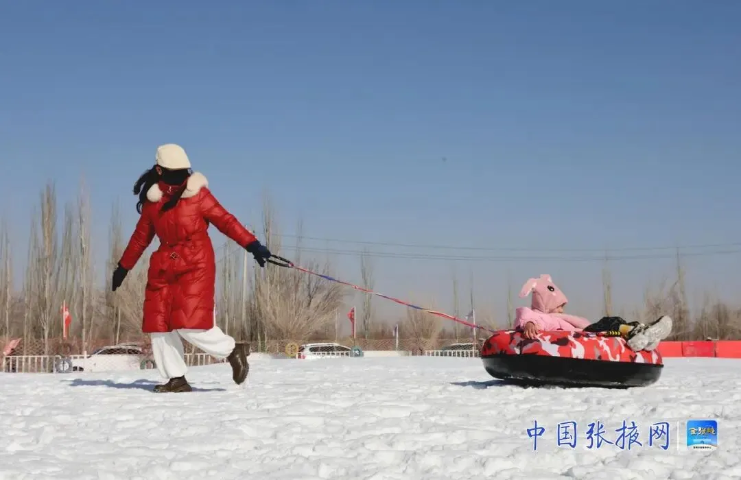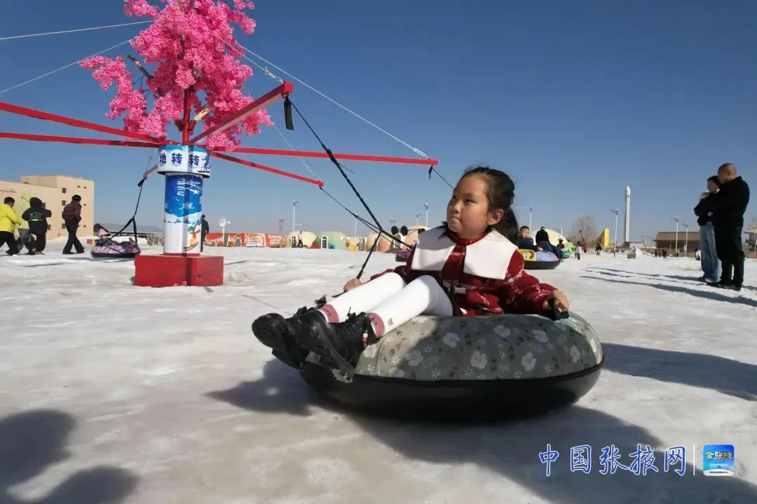 如果说祁连山滑雪场展现了传统冰雪运动的激情与活力,那么甘州区神沙窝太阳岛景区则让沙漠与冰雪碰撞出独特魅力。作为甘州区冰雪旅游的核心打卡地,该景区紧扣“冰雪+年味”核心,精心布局了丰富多样的冰雪业态,打造全龄段适配的游玩场景。动力雪圈区人气爆棚,游客们结伴乘坐,从陡峭的雪坡上疾驰而下,感受风驰电掣的速度与激情,尖叫声与欢呼声交织成欢乐的乐章;悠波球、八爪鱼等趣味动力设施前,孩子们排着长队,一个个迫不及待地投身其中,体验冰雪带来的无穷乐趣。
