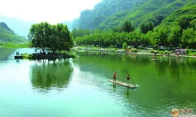 我们坐着游船在湖面上行驶,碧绿的湖水翻起的一道道波浪向后退去。湖水真的是蓝啊,就像晴朗的天空坠落在山的怀抱里,而且,水里没有一点杂草,干净透明。我长这么大没见过这么蓝的水,很想跳进去畅游一番。