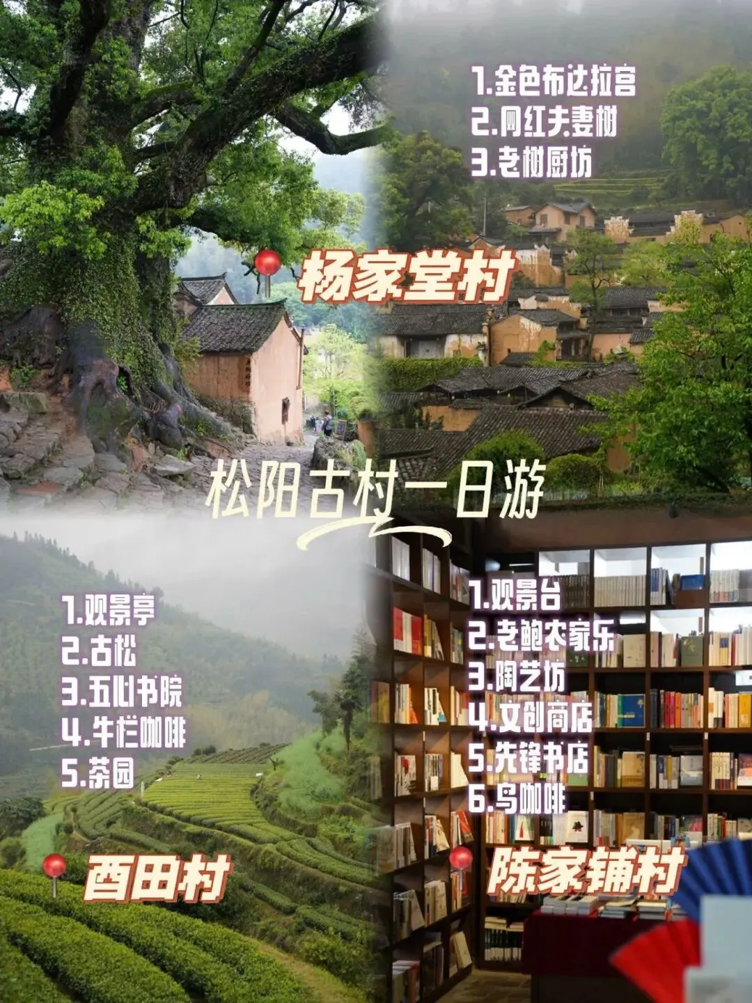 杨家堂古民居群、村口的千年夫妻树、梯田观景台、竹林小径