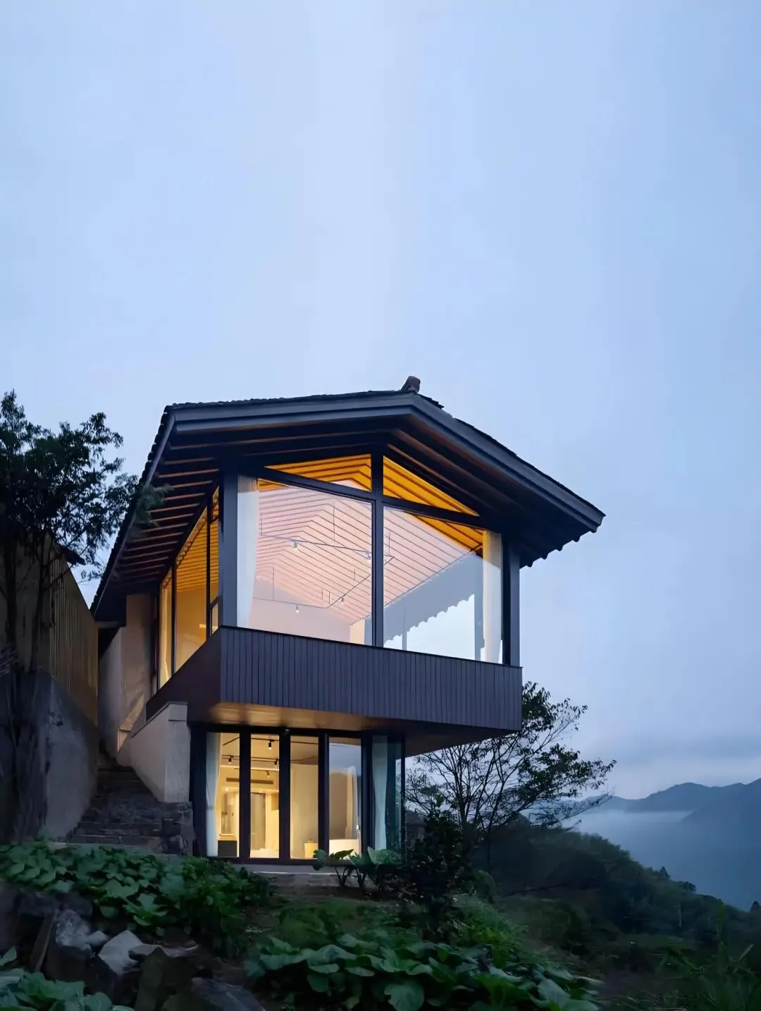 飞茑集民宿,老房子改造而成,夯土墙,每间房都能看到美丽的山景