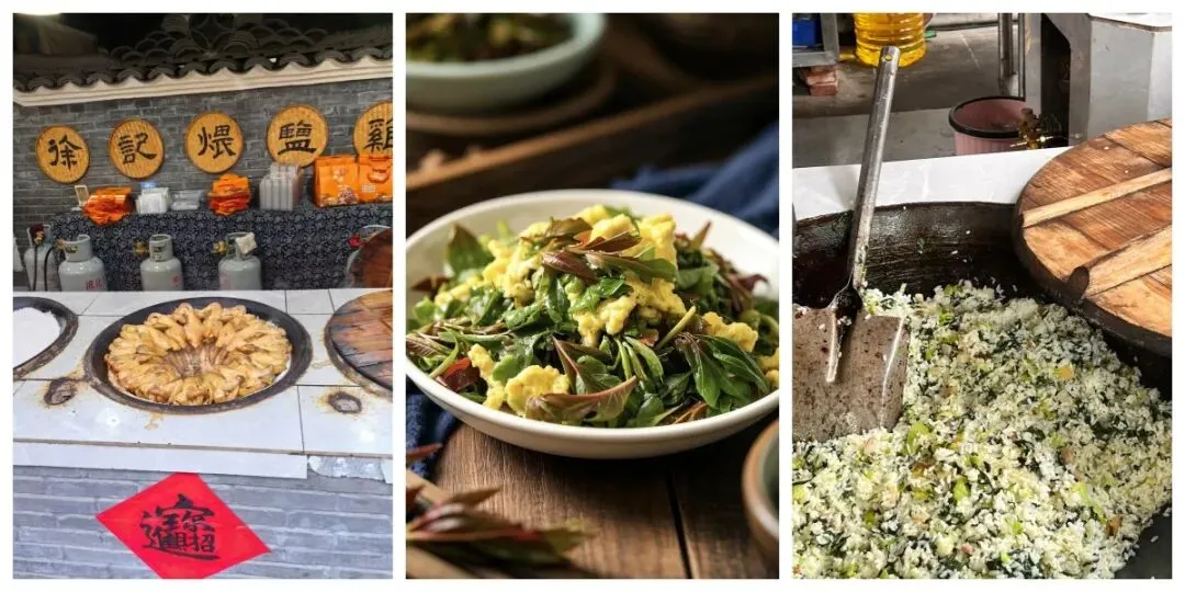 松阳煨盐鸡、野菜炒鸡蛋、番薯粿、土灶米饭