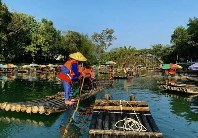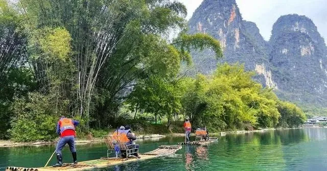 桂林的竹筏更有意思 , 票本身就贵还难抢 , 上了筏子没多久 , 筏工说到水坝了要返程 , 想继续往前?加钱。 大家一想"来都来了" , 就掏了。