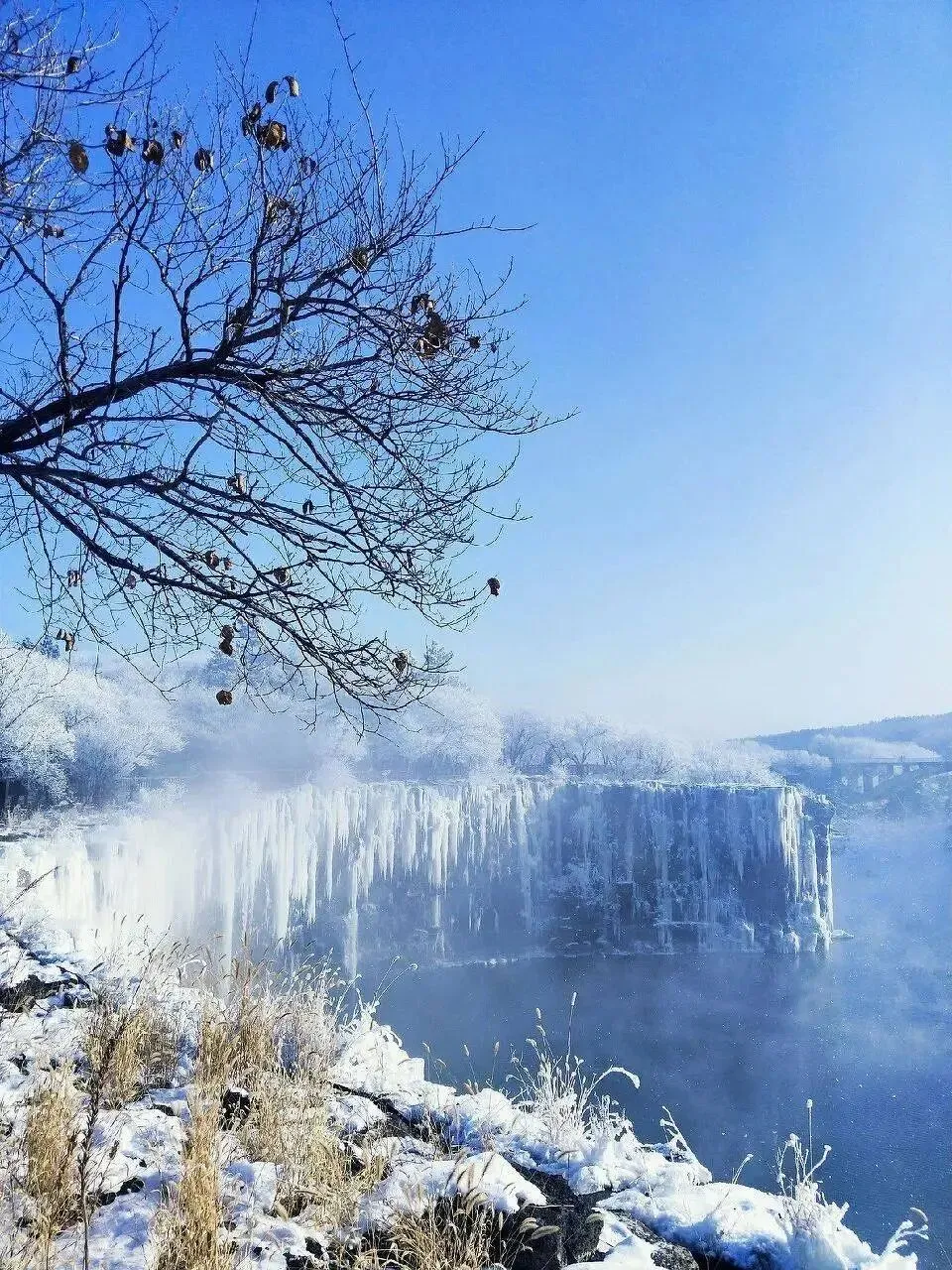 另外瀑布虽然被冰冻了,可是瀑布下面深潭里的水在整个冬季,都不会冰冻,原因是这个深潭实际上是一个温泉,所以冬季无论多么寒冷都不会冰冻。下面就说说在镜泊湖景区过春节是一个什么样的感受?一、雪落无声,却惊醒了沉睡的湖。