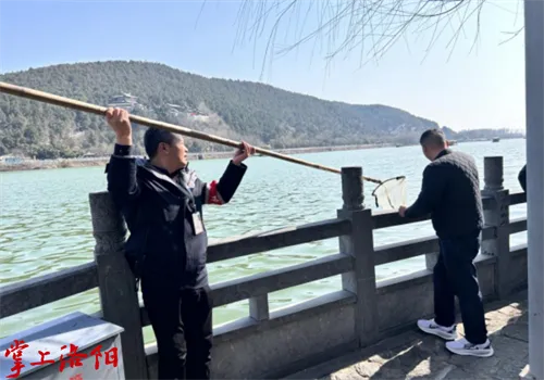 2月17日下午1时35分,一名游客因孩子奶瓶掉入伊河求助,秩序维护人员马利峰迅速取来打捞工具,顶着风力耐心尝试20分钟,成功打捞并擦拭干净后归还,游客感动不已。
