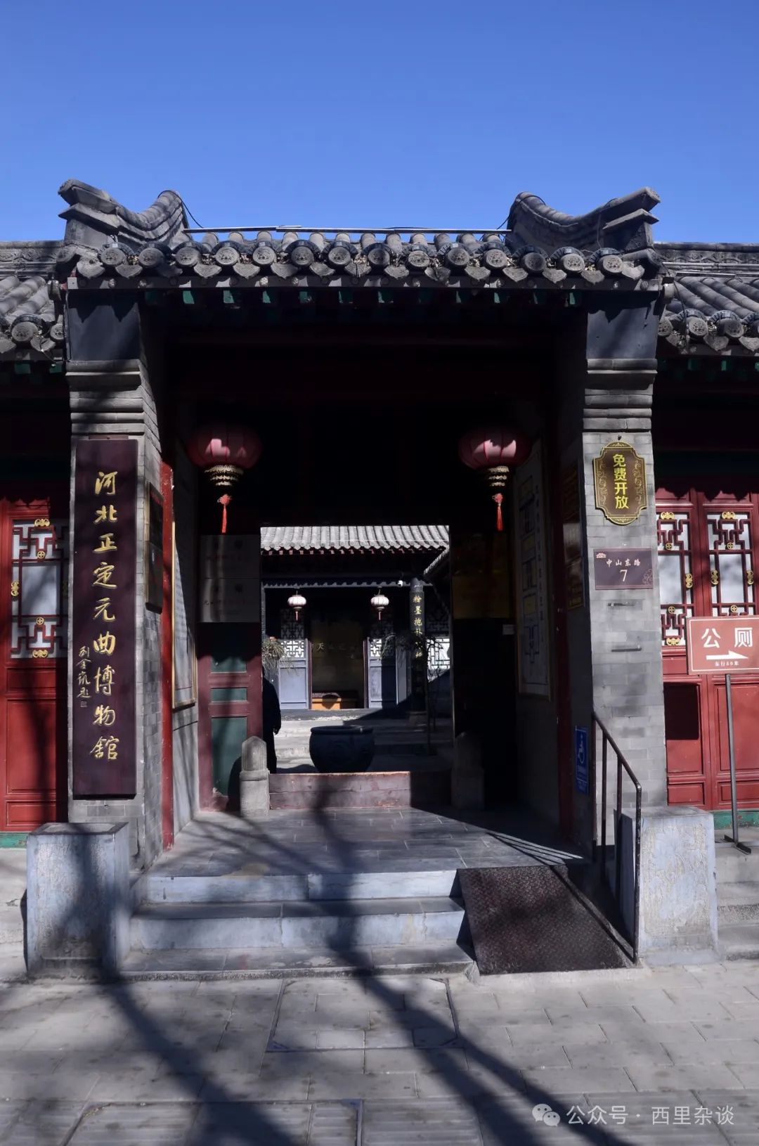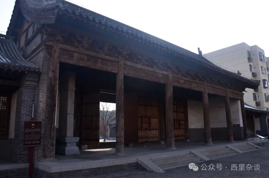 我曾在正定游记第二篇中说到,正定的古建筑遗存,从唐至清没有断代。唐代的是开元寺钟楼,宋代的有隆兴寺摩尼殿,明代的有崇因寺毗卢佛殿,清代的就更多了~诸如隆兴寺戒坛,还有宋金混搭的凌霄塔,那元代的呢?现在我就来告诉你:元代的遗存就是这座府文庙戟门,由梁思成鉴定确认,是正定唯一的一座元代建筑,具有很高的建筑史研究价值。戟门面阔五间,进深两间,单檐悬山式建筑,体量不小。两边的耳房年代晚不少。列位看官一定会问:戟门为什么没有同大成殿一起拆毁呢?我也很是奇怪。当看到戟门修复前的照片时,我明白了。那张照片中,戟门的前后立柱间都砌着墙,还有门有窗。想来,这座戟门在当时被改成了民房,当然拆不得。世间的事往往就这么怪诞,被改为它用本是糟蹋,却反倒因此而存之七八,真是福祸相伏。所谓“戟门”,是古代帝王外出住宿时,在住所外插戟为门,既是警示,又是仪仗,后来变为一种显示地位的建筑样式。文庙供奉的是大成至圣文宣王孔子,所以文庙大成殿前都有戟门。元曲博物馆是在大年初二去的,之所以放在本篇说,因为它是在一个老四合院里,与王家大院相似,它叫“马家大院”。马家大院建于民国年间,现存三进四合院,原主人据称是东汉开国大将马援的后裔。这么说来,前院主的祖上曾与我的祖上一起征战过,我是东汉开国云台二十八将之首禹公的第六十七世孙。参观了元曲博物馆才知道,正定是元曲的发源地和一个重要的创作中心,其关联人物就是元曲大家白朴。元曲博物馆以“曲韵天成、遗音流响,正定元曲文化陈列”为主题,分四个单元,较全面阐述了正定元曲艺术的发展史。