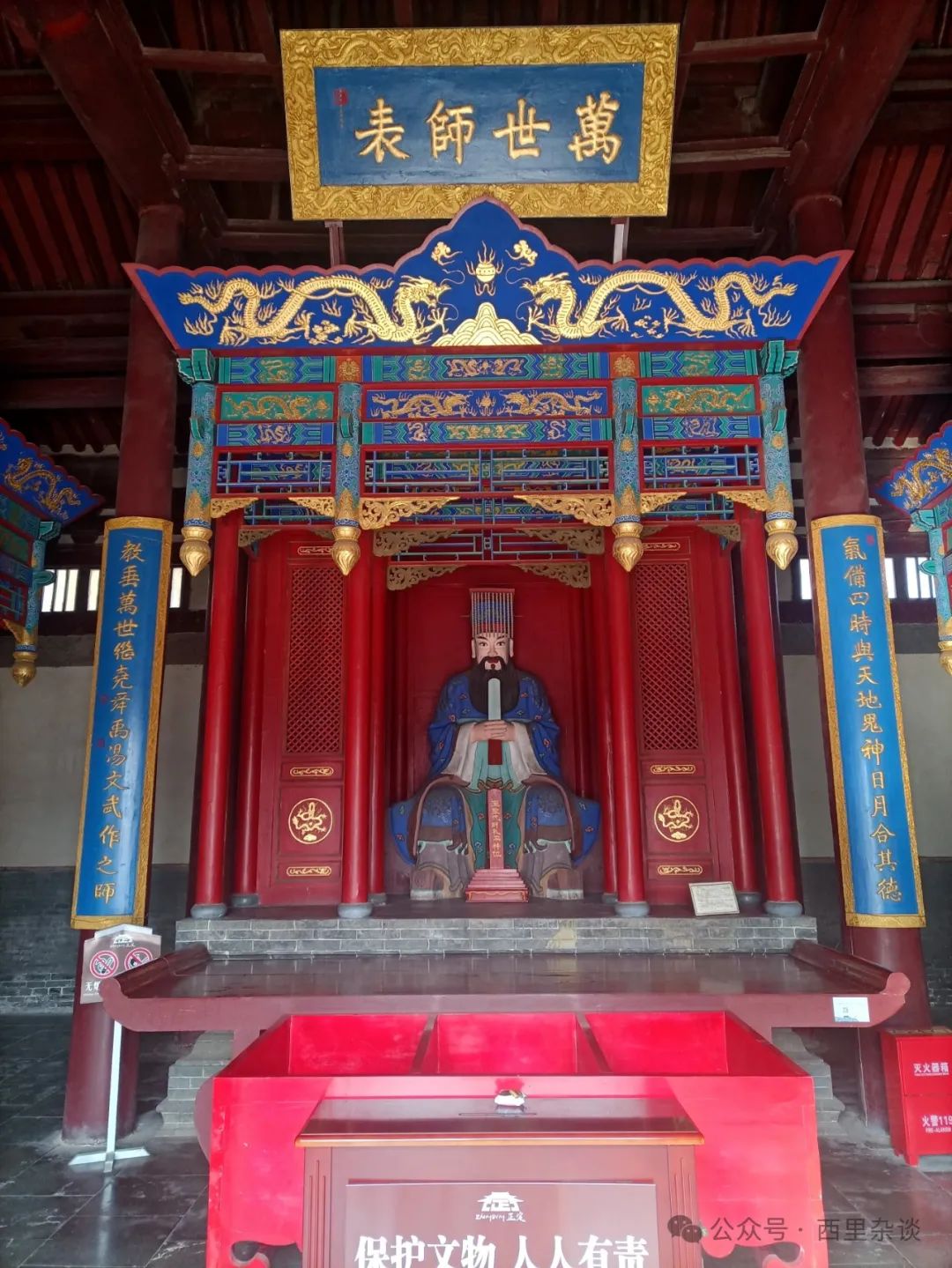 一点五十五,我们来到县文庙。县文庙的停车场就在棂星门前。县文庙始建于明洪武七年(1374年),是在一座古寺院基础上改建的,其中一个佛殿改成了大成殿,这个佛殿始建于唐末至五代时期。所以,正定县文庙的大成殿是国内现存建筑年代最早的大成殿。不过,1949年后,县文庙被再次改建,先后成为了学校、招待所和法院。除大成殿外,其他建筑均破旧立新,而大成殿的地面、墙体及装饰也做了较大的拆改和变动。所幸的是,大成殿原大木构架被封闭于新吊顶中,未被破坏,从而保留下了殿顶的早期样式和构件。这又是一件令人痛心的事。泮桥后面是一道小庙门,进了庙门是个小院儿。院儿内依次是孔子像和戟门,穿过戟门,就是大成殿了。此时,小院儿里幽静无人,午后的阳光暖暖的,一个庙猫贴了过来,在我脚边腻歪了好一会儿。大概每年的五六月,这里会很热闹吧。大成殿内有孔子和四配十二哲塑像,是参照曲阜孔庙增补的。所谓“四配十二哲”指的是孔子的十六位传人,其中四配是复圣颜回(颜子)、宗圣曾参(曾子)、述圣孔伋(孔子之孙)、亚圣孟轲(孟子),十二哲是闵损(子骞)、冉雍(仲弓)、宰予(子我)、端木赐(子贡)、冉有(子有)、冉耕(伯牛)、仲由(子路)、言偃(子游)、卜商(子夏)、颛孙师(子张)、有若(子有)和南宋朱熹。看着这座簇新的大成殿,实在和“最早”的感觉贴合不上。参观完县文庙,开车往西走,几分钟后,就到了古城西门附近的王士珍故居。此时是下午两点二十五。停车场就在王家大院西边的小胡同里,一不留神没找到,就把车停到了对着西门的路边儿。