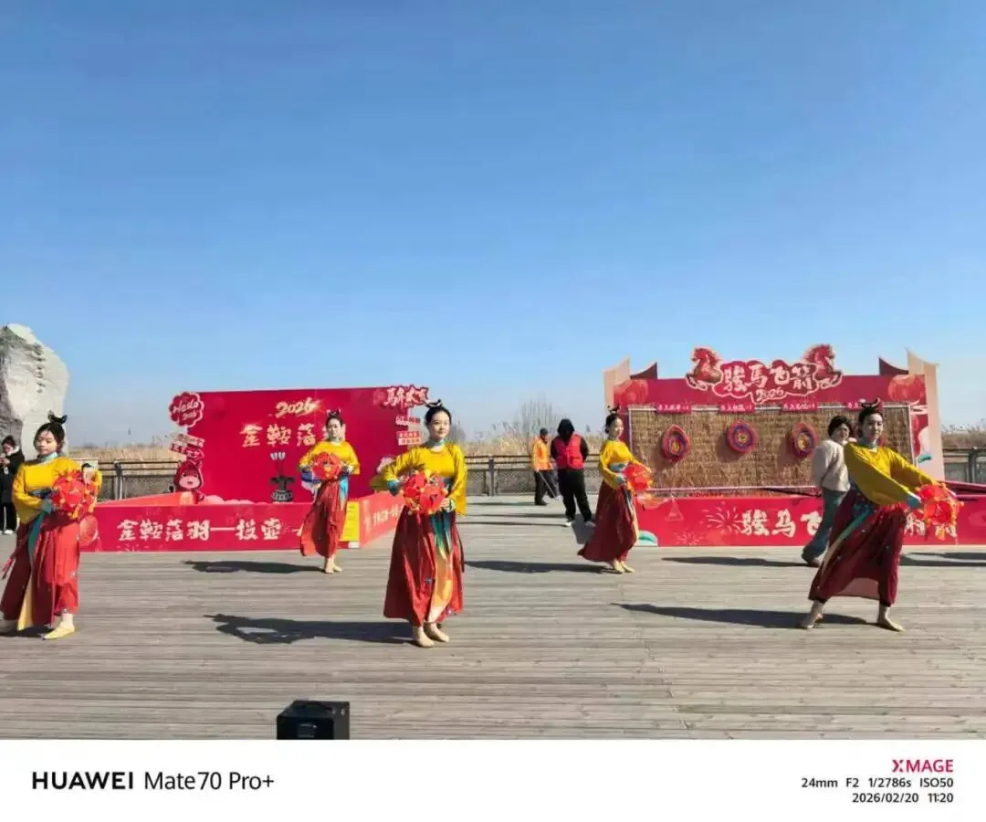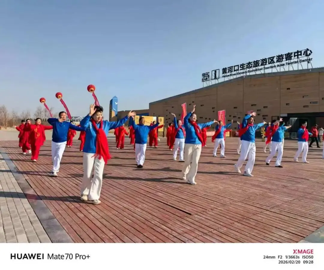 这里锣鼓声、欢笑声、喝彩声交织在一起,与黄河的奔涌之声相映成趣,构成了黄河口最动人的新春乐章,也让每一位前来游玩的游客,都能重拾记忆里的热闹年味儿。