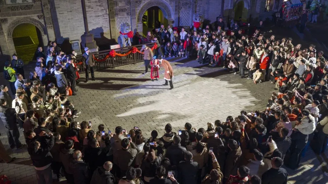 在花戏楼老街广场,热闹的民俗巡游拉开新春序幕,更有财神巡游为您送上新春祝福;山门广场上,新春快闪轮番上演,瞬间点燃节日氛围。景区内更有皮影戏等你来打卡!