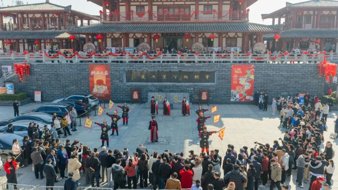 运兵道迎宾广场,“曹操” 亲自开门迎宾,气势恢宏。在曹操剧场,《老曹的运兵道》揭秘地下兵道的军事智慧,《魏王的宴》带你体验一场三国时期的盛大宴会,《消失的曹操》则是一场悬疑追凶,等你来解谜。