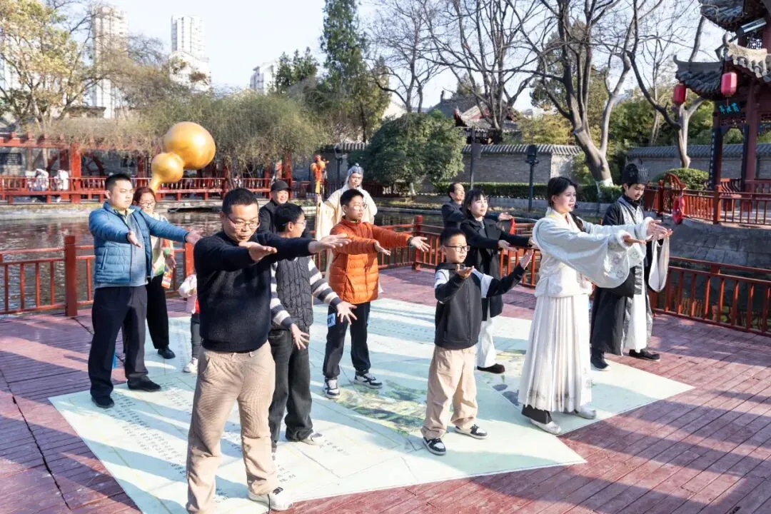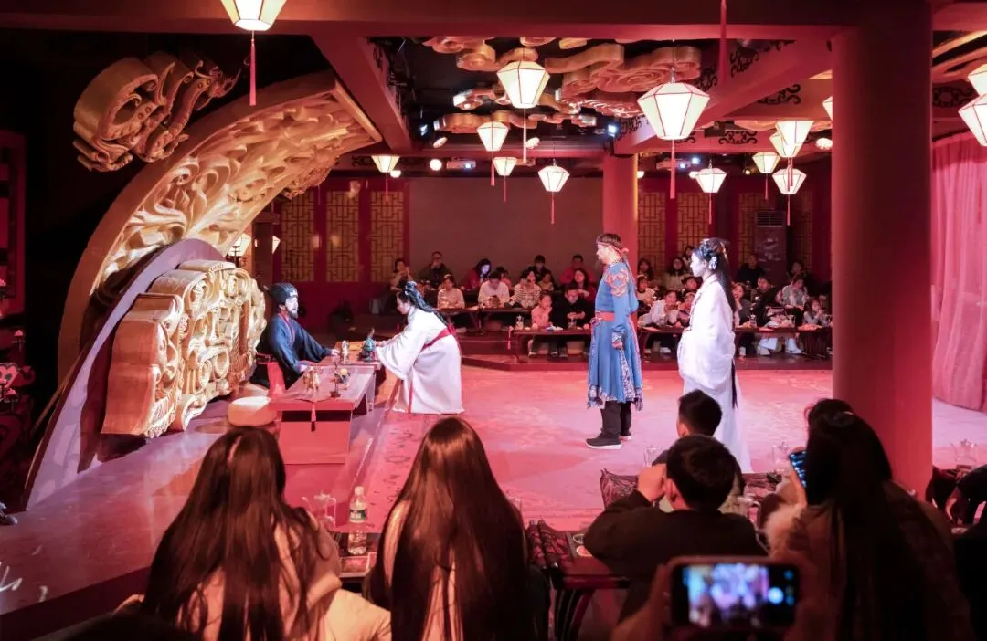 临水舞台上,经典名剧《白蛇传》婉转开唱;朱公书院前,《七品芝麻官》诙谐上演,让你笑口常开;粮坊会馆的非遗小剧场,带你感受亳州非遗的独特魅力;养生殿前,“钱员外招婿”“戏台争春” 等沉浸式互动,让你一秒穿越回古代。