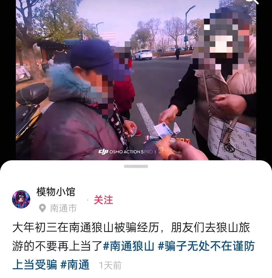 大年初三在南通一景区被骗,网友:丢南通人的脸!