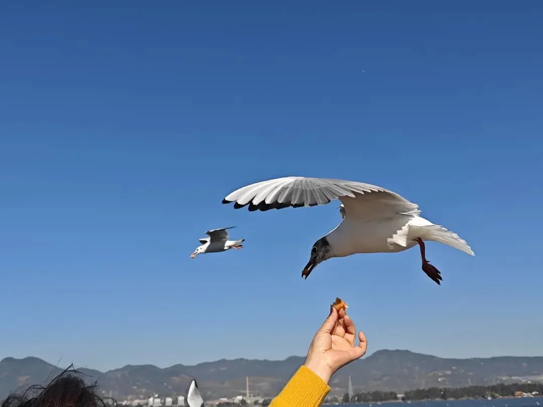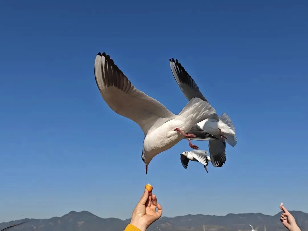 昆明的红嘴鸥太可爱了,每一个都那么亲人,真的要感谢昆明人的善良,和鸟儿建立了深厚的感情。