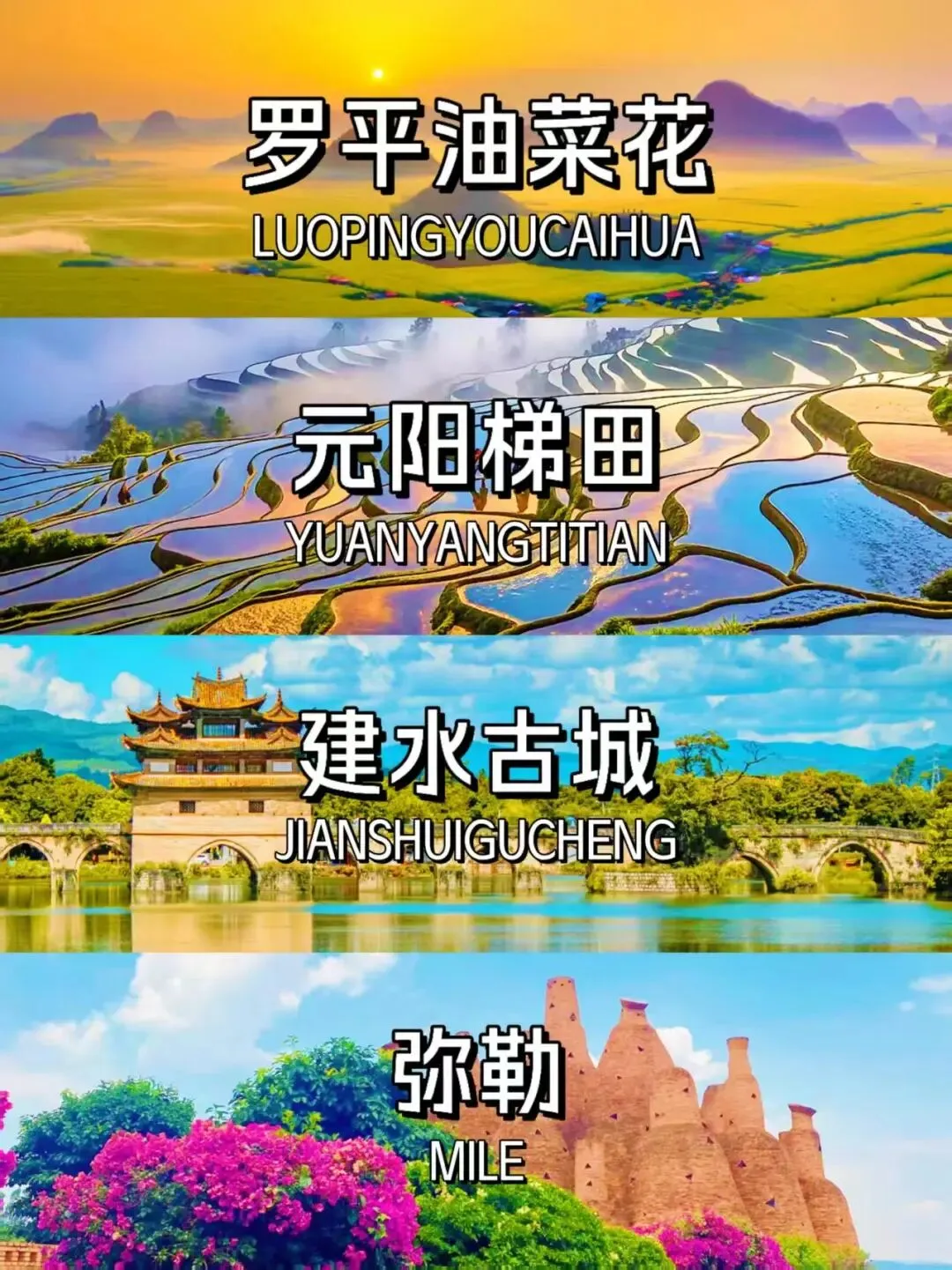 云南,是藏着四季同框的神奇之地。雪山巍峨、洱海苍茫,有古城温柔、古镇静谧,也有万亩油菜花开成海、千年梯田倒映星河。风掠过苍山洱海,云漫过玉龙雪山,阳光洒在抚仙湖的碧波上,烟火藏在建水古城的小巷里。
