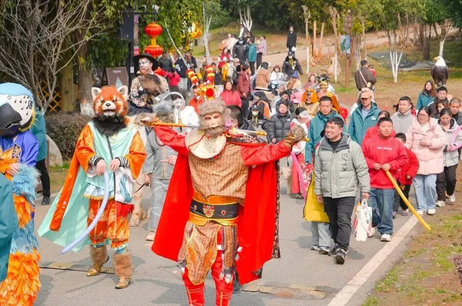 萌宠添欢喜,野生动物王国的热闹年味超吸睛。春节前四天入园量同比暴涨700%,全新开放的“明知山”虎园,让游客近距离感受东北虎的雄姿;猿猴部落、非洲部落焕新亮相,网红秃鹫“快乐打工鸟”圈粉无数。4米巨型奇幻木偶巡游、“武汉猫女”随机互动惊喜不断,全园动物花式营业,冷天气里的游玩热情,被这份野趣彻底点燃。
