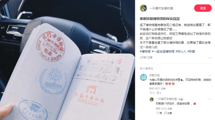 书香与年味相融,服务与温情同行。在市博物馆,服务保障人员捡到游客遗失的集章手册后,第一时间妥善保管并主动联系、及时交还失主。这一贴心的举动,获得游客点赞,也成为这个春节“文化惠民”最生动的注脚。