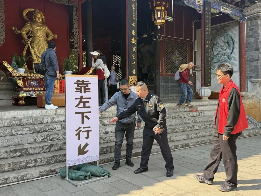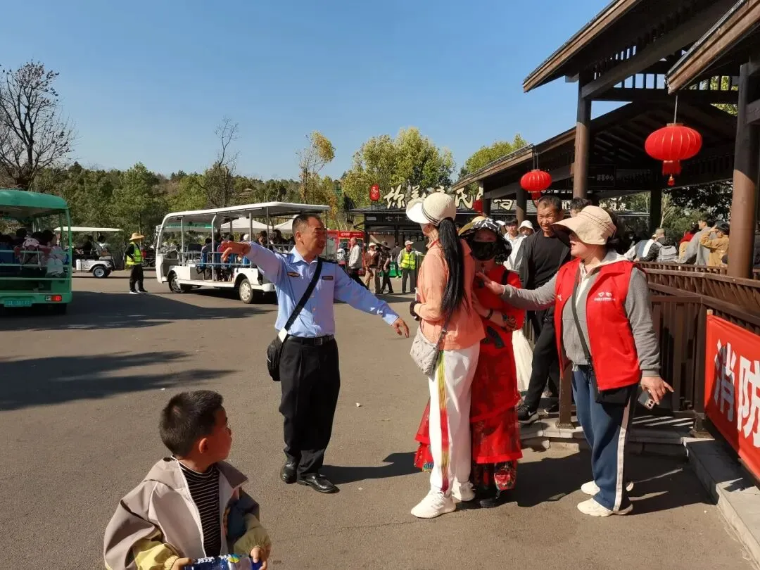 在人流密集区域、重点点位,大家热情提供旅游咨询、路线指引、秩序维护、应急帮扶等服务,耐心解答游客疑问,主动帮扶老人、儿童等特殊群体。