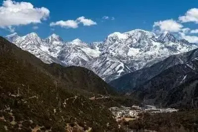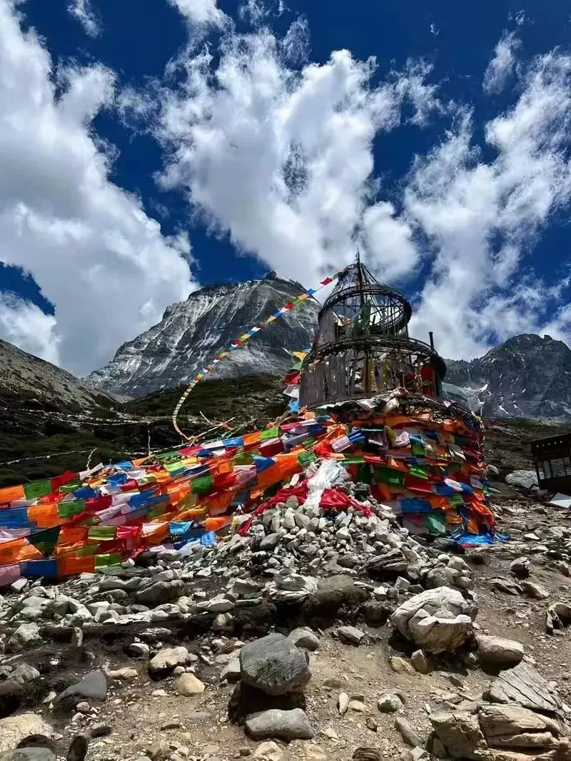 观稻城【尊胜白塔】后,经稻城县城,翻越波瓦山沿赤土河谷前进,抵达香格里拉乡镇。