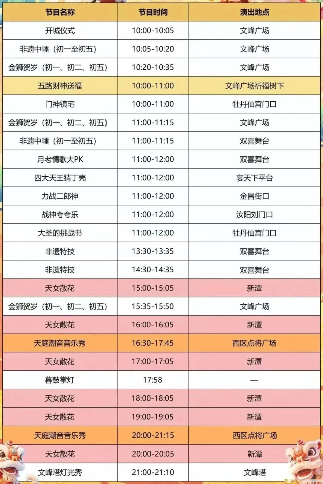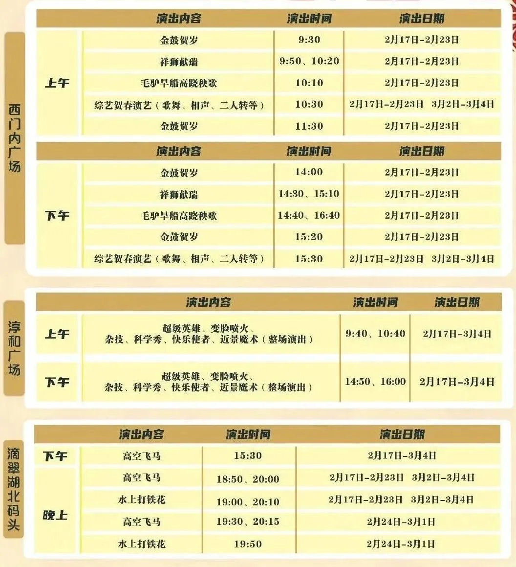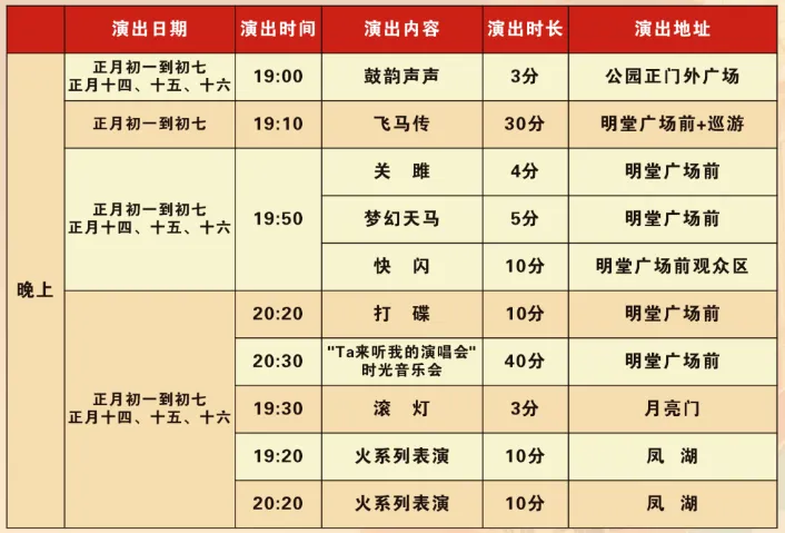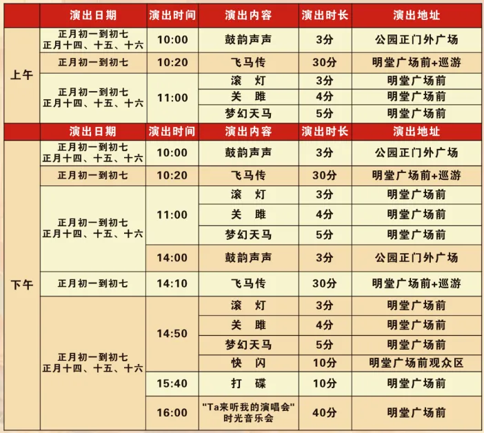 洛邑古城春节演出节目单(正月初一至初七)