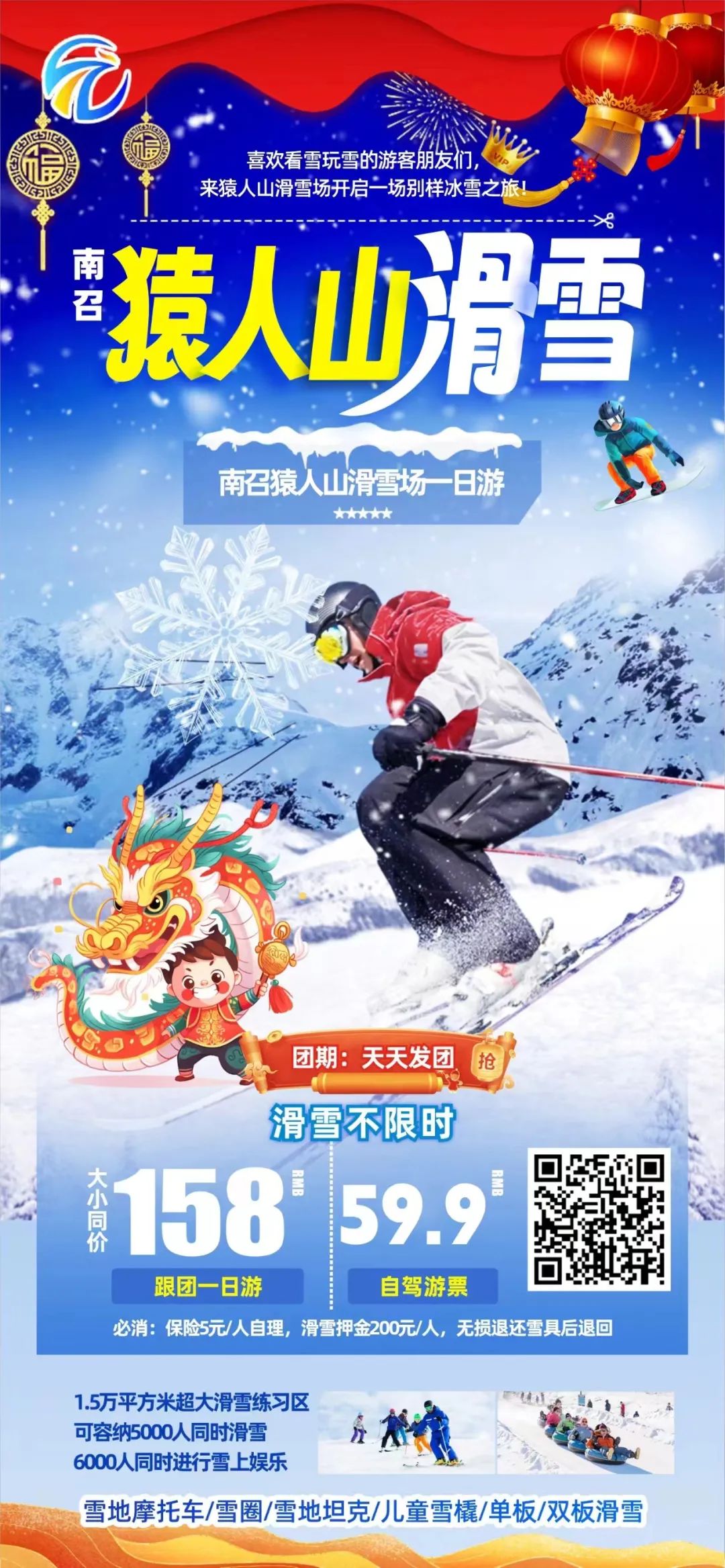 『天天发团丨南召猿人山不限时滑雪』一日游158元