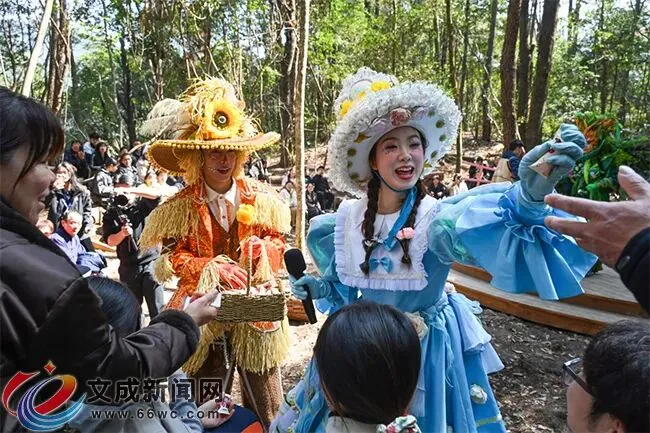 在欣赏山水风光的同时,景区创新融入的沉浸式戏剧、互动演出等新潮体验,让游玩更具趣味性与参与感。在森林剧场,演员们身着童话角色服饰,化身多萝西、稻草人、铁皮人等经典形象,与景区自然山水融为一体,真实还原童话里的奇幻场景。游客们一路行走,一路邂逅剧情,在自然山水间感受着童话趣味与新春祝福。