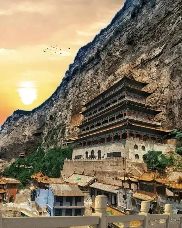 山西绵山融合了儒、释、道三教文化的精髓!其建筑尤以大罗宫最为气势磅礴沿着山壁而建的殿宇楼阁、雕栏画栋、青瓦飞檐,层层叠叠格外壮观,仿佛现实中的“九层妖塔”,这大概是游戏里才有的CG场景!身临其境唯有震撼!