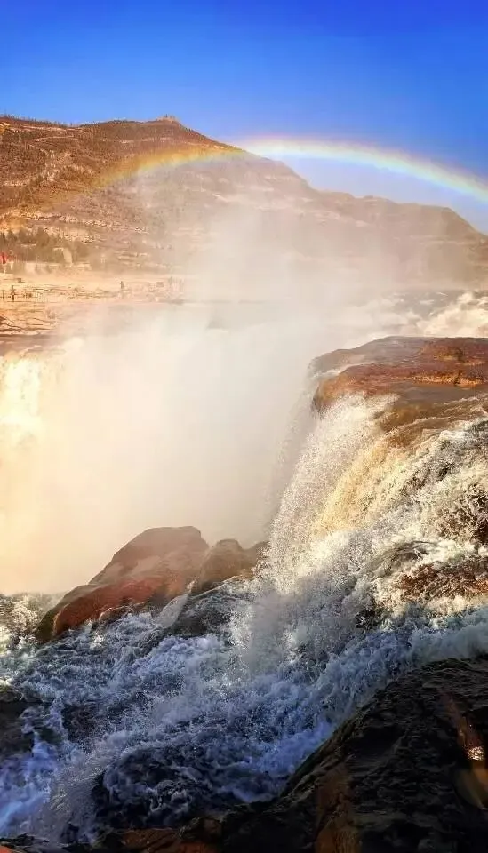 黄河之心,民族之魂,山西侧的观景台距瀑布仅 50 米,可感受 "黄河之水天上来" 的震撼。雨季时,400 米宽的洪流涌入 30 米狭槽,形成 "旱地行船" 的奇观;冬季冰瀑晶莹如玉,彩虹桥横跨两岸。最佳观瀑点 "龙洞" 深入河床,仰头可见万马奔腾的水流从头顶倾泻而下。