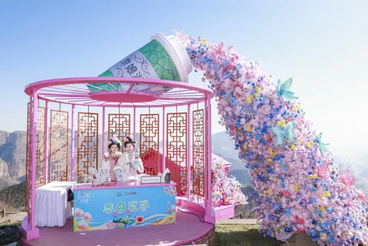 景区以花朝文化为核心,将氛围营造与特色表演深度融合,打造出一场沉浸式的春日盛宴。现场精心设置了主题巡游互动区、NPC合影区、云上花朝小镇等多个特色场景。游客们可以参与主题巡游互动,与身着特色服饰的NPC合影留念,在云上花朝小镇拍摄“人生照片”,定格武安版“千里江山图”的绝美瞬间,在青山绿水间,尽情感受春日浪漫与传统文化交融的独特魅力。