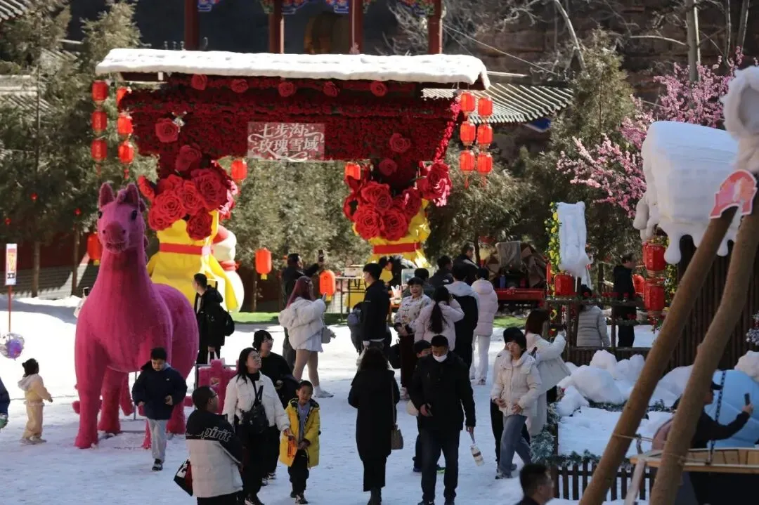 七步沟景区内,游人摩肩接踵、人气持续高涨。作为国家4A级景区,七步沟依托太行山冰雪资源,将自然景观与文旅体验深度结合,围绕“冰雪和新春”主题,打造戏雪乐园、芦海仙境、雪域玫瑰、千灯古韵四大网红板块,成为朋友圈刷屏的新春出游胜地。