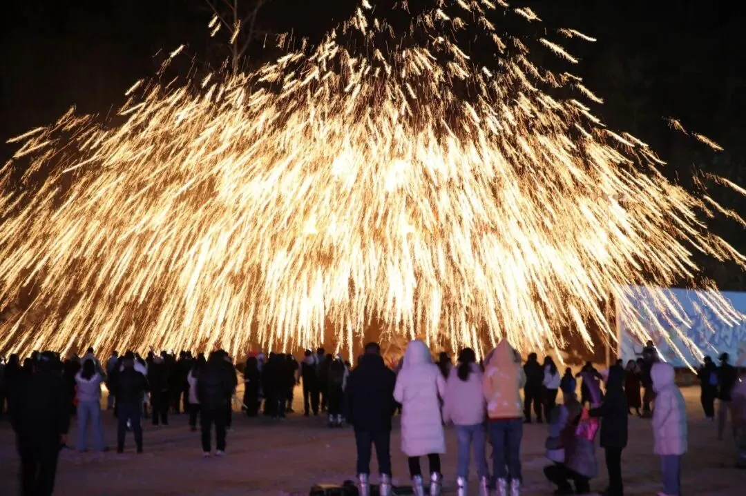 非遗打铁花凌空绽放,铁水流星、璀璨夺目,在炽热光影中将新春氛围拉满。景区每日还有男团女团演艺、NPC互动、烟花瀑布等精彩节目轮番上演,日夜精彩不断,让游客沉浸式感受非遗文化与浓浓年味交融的独特魅力。