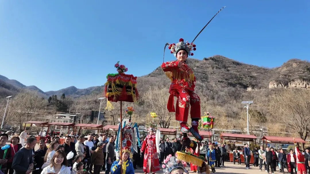 大年初四,记者在龙潭大峡谷景区看到,盛大的民俗展演好戏连台、精彩纷呈。豫西非遗背装表演格外吸睛,演员身着喜庆的红绸戏服,肩扛精巧的多层造型,桩上小演员彩衣飘飘、凌空而立,独特的民俗技艺引得游客纷纷驻足打卡。而在另一边,醒狮腾跃起舞、昂扬迎春,轧罗子官诙谐互动、妙趣横生,小丑演员现场制作各式气球造型免费派发,现场欢声笑语不断,节日氛围热烈浓厚。