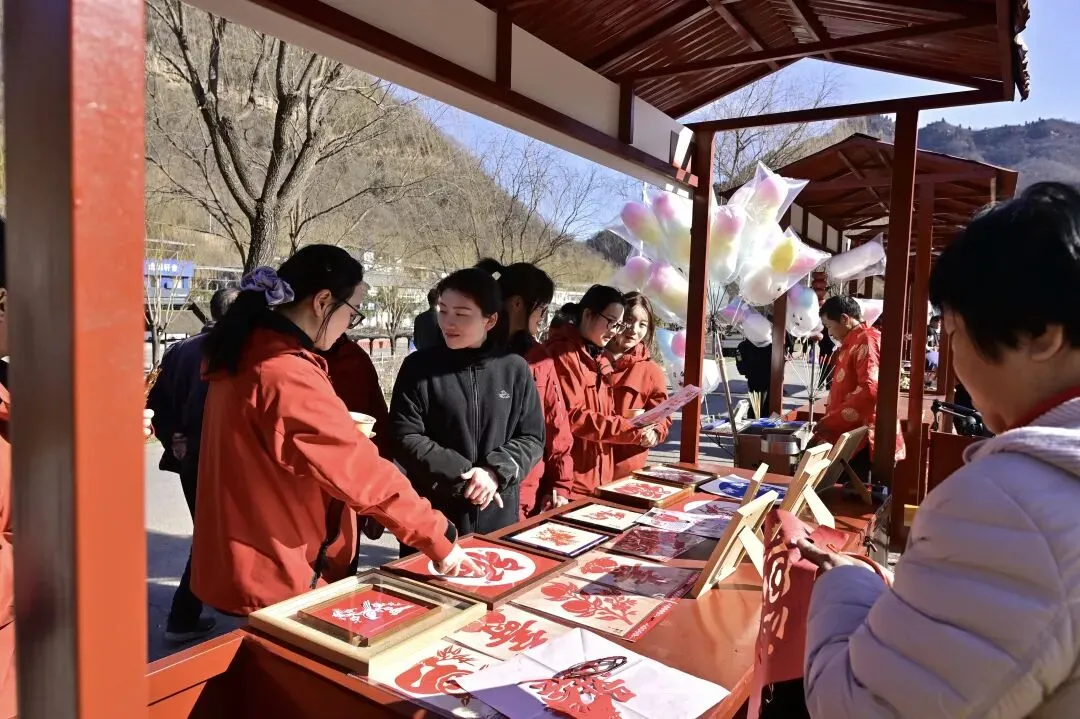 景区同步开放的非遗市集同样人气高涨、热闹非凡。糖画、面人、吹糖人等传统技艺,勾起了游客的童年回忆;拓印、剪纸、编织等非遗项目现场展示体验,吸引不少游客动手参与,大家将满载匠心与年味的非遗作品带回家,让传统文化可感可触。