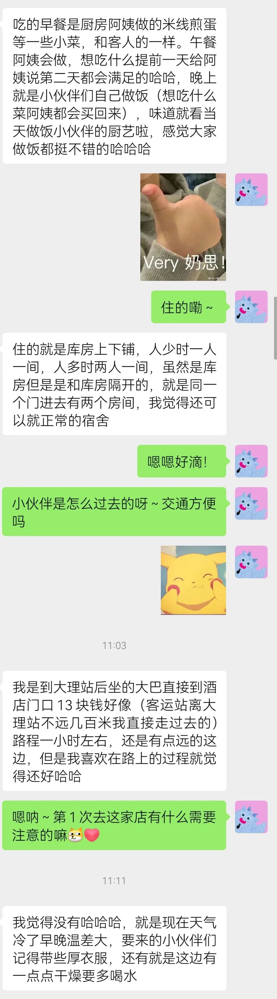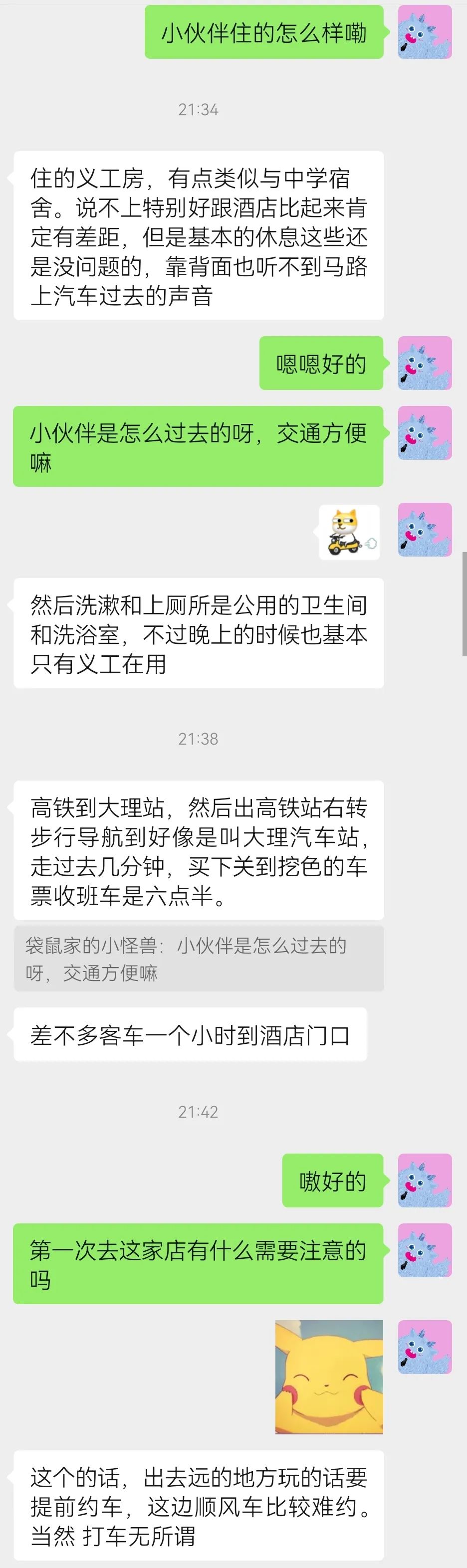 也强烈建议大家和民宿老板能有一个视频聊天的过程。聊聊去要准备什么东西啥的都可以,尤其是问住宿和工作有无变化,因为推文时效性不高,可能店会因为人员变动啥的有所变化,袋鼠也跟店家说要提前讲清楚,但是大家多问问总没坏处的。