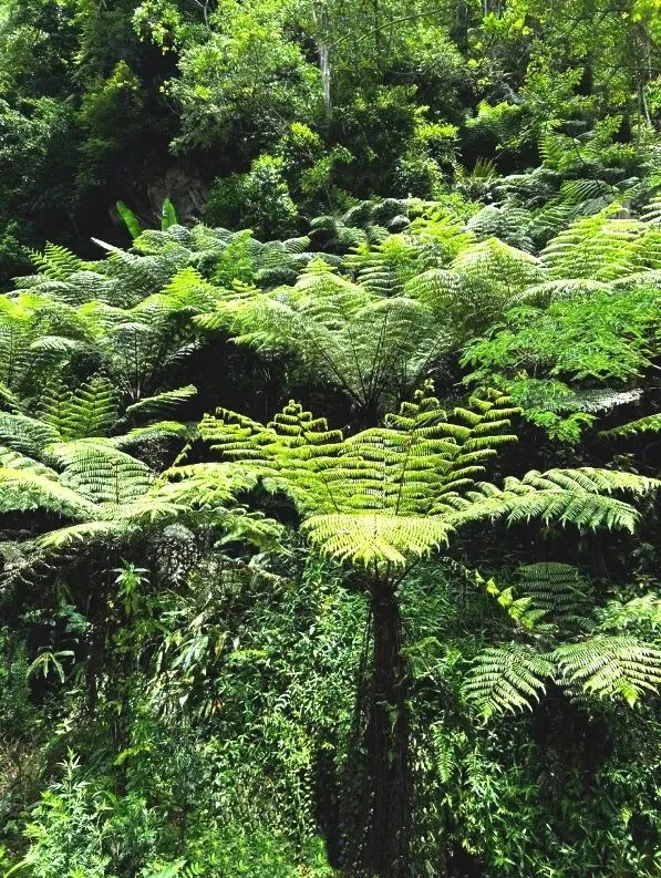 在游船上可以看到两岸上亿年的桫椤树。