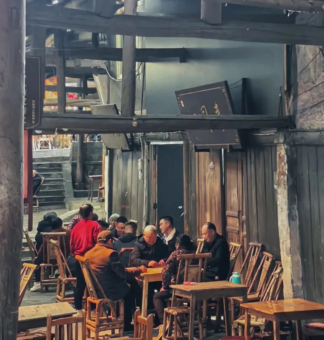 主街凉棚下全是本地人喝茶、打牌、摆龙门阵,烟火气拉满。