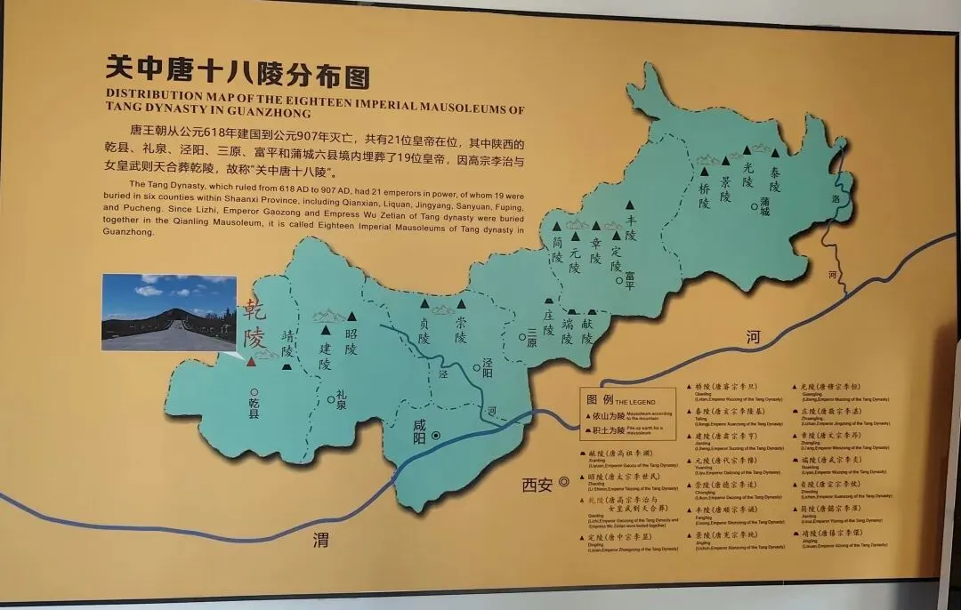 我还特意拍了一张关中唐十八陵分布图,看着地图上一个个帝陵的位置,才真正感受到“关中唐十八陵”的规模和气势。乾陵作为其中最特别的一座,地位不言而喻。