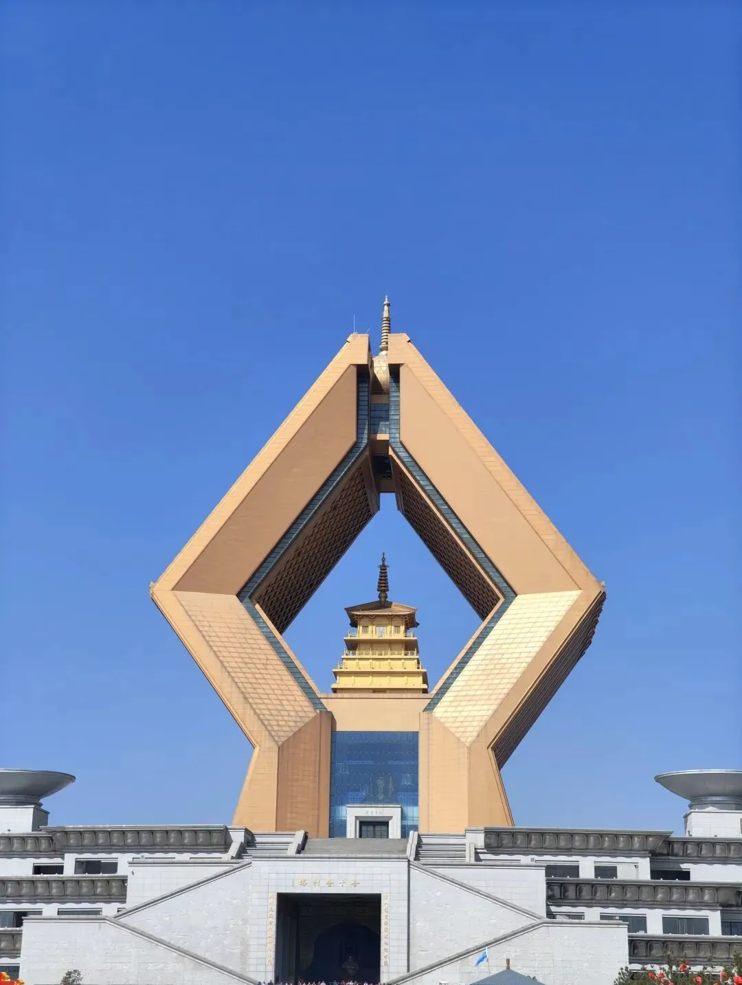 新景区的合十舍利塔特别壮观,金色的菱形结构在蓝天下格外耀眼,拍照很出片;