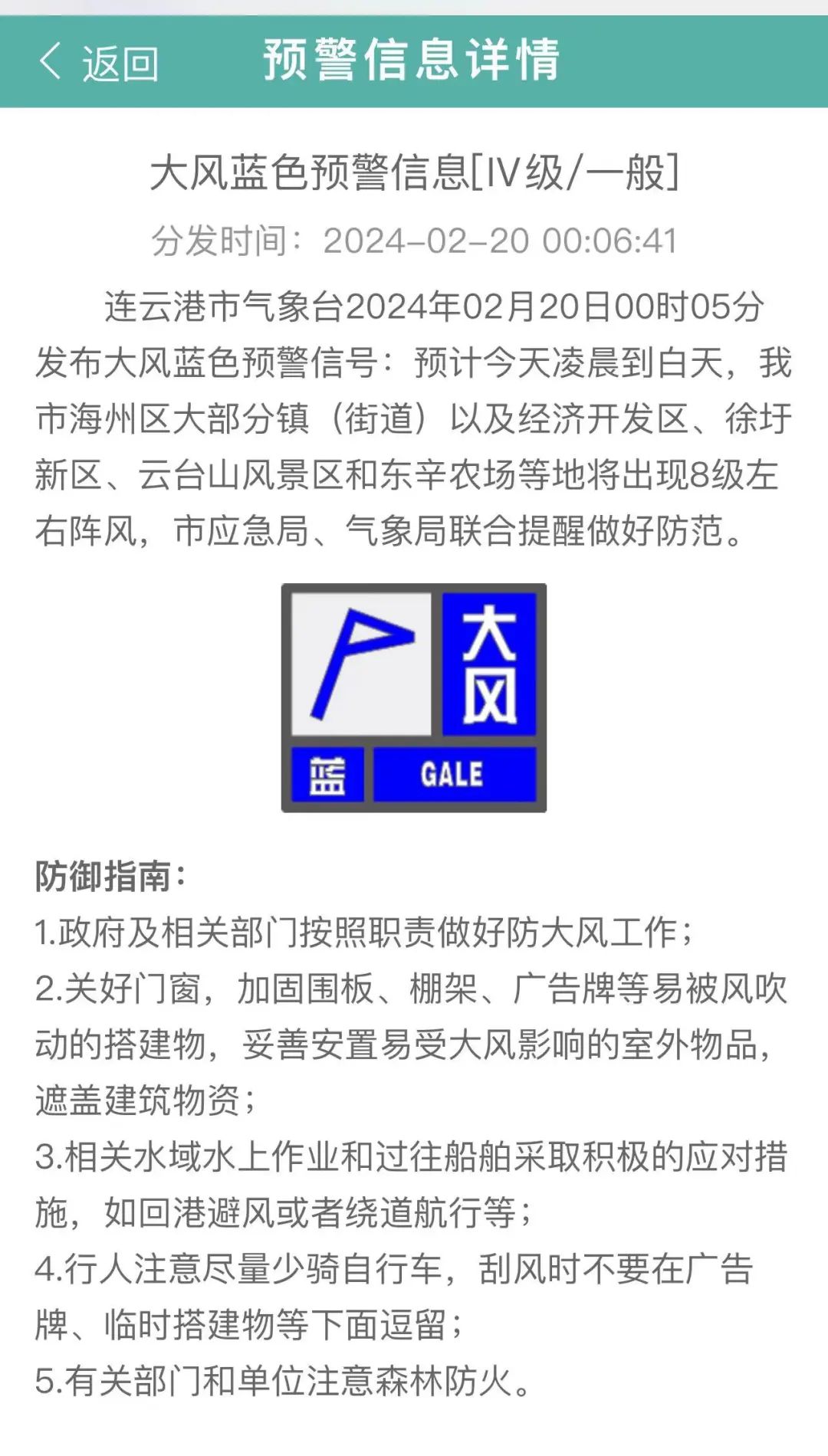 您好!连云港气象台2024年02月19日21时41分发布道路结冰橙色预警,受雨雪冰冻天气影响,景区路面结冰存在隐患,为切实保障游客安全,连岛景区于2024年2月20日起临时闭园,具体开放时间另行通知。由此带来的不便,敬请谅解!