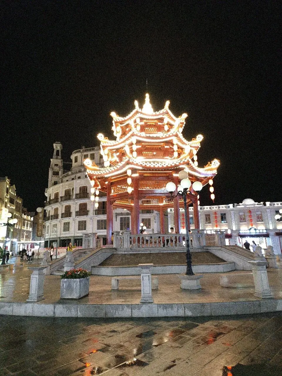 夜晚的小公园亭也格外的璀璨夺目。