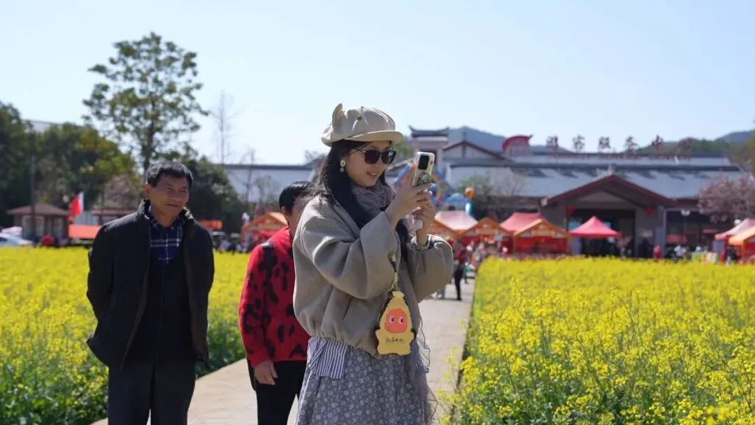 景区内的红军公田里,百亩油菜花竞相绽放,金黄色的花海与“没有调查没有发言权”九个大字交相辉映,成为新春一道靓丽风景。游客徜徉花田,赏花拍照,在感受红色文化的同时,尽享惬意田园风光。