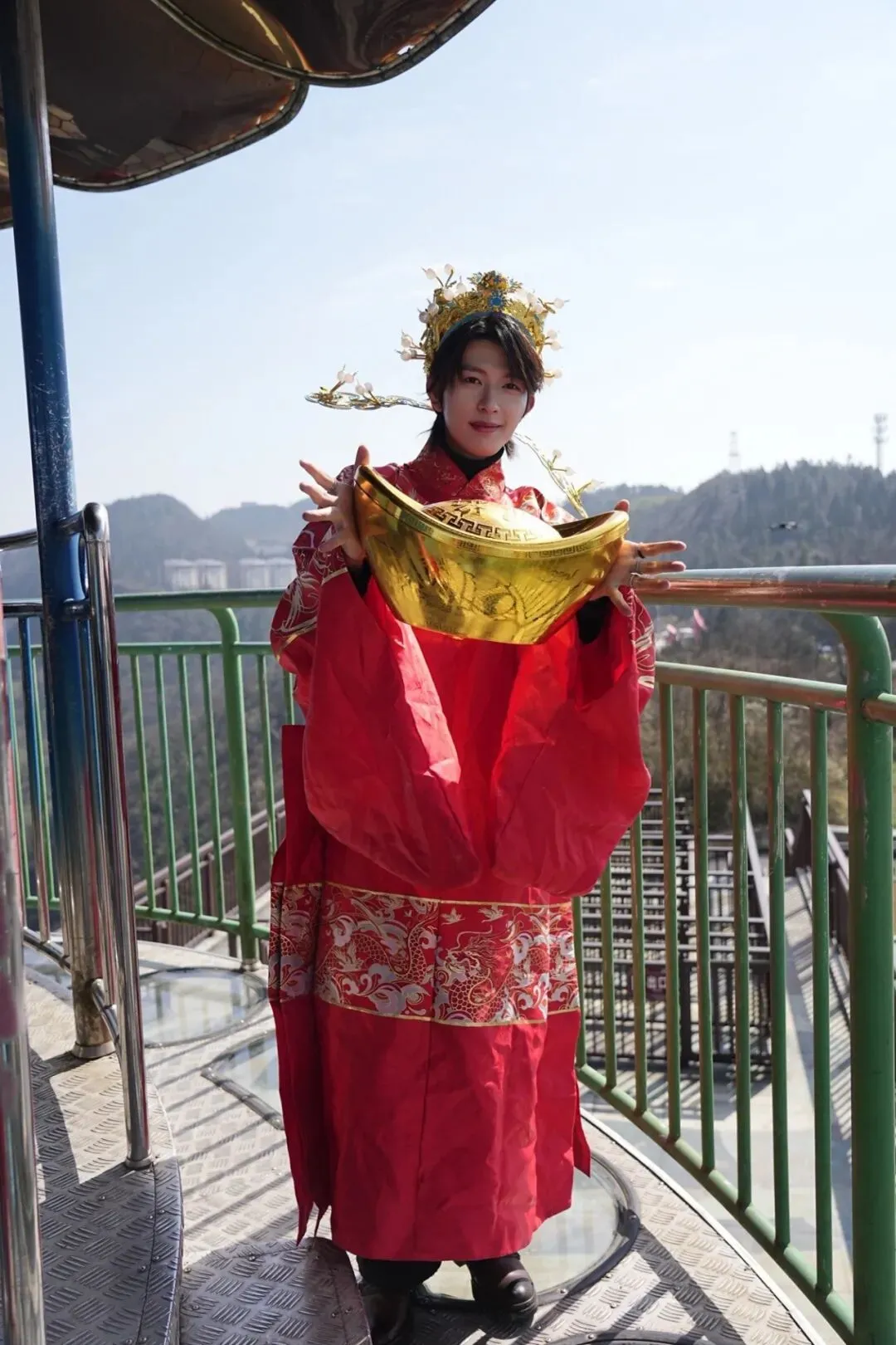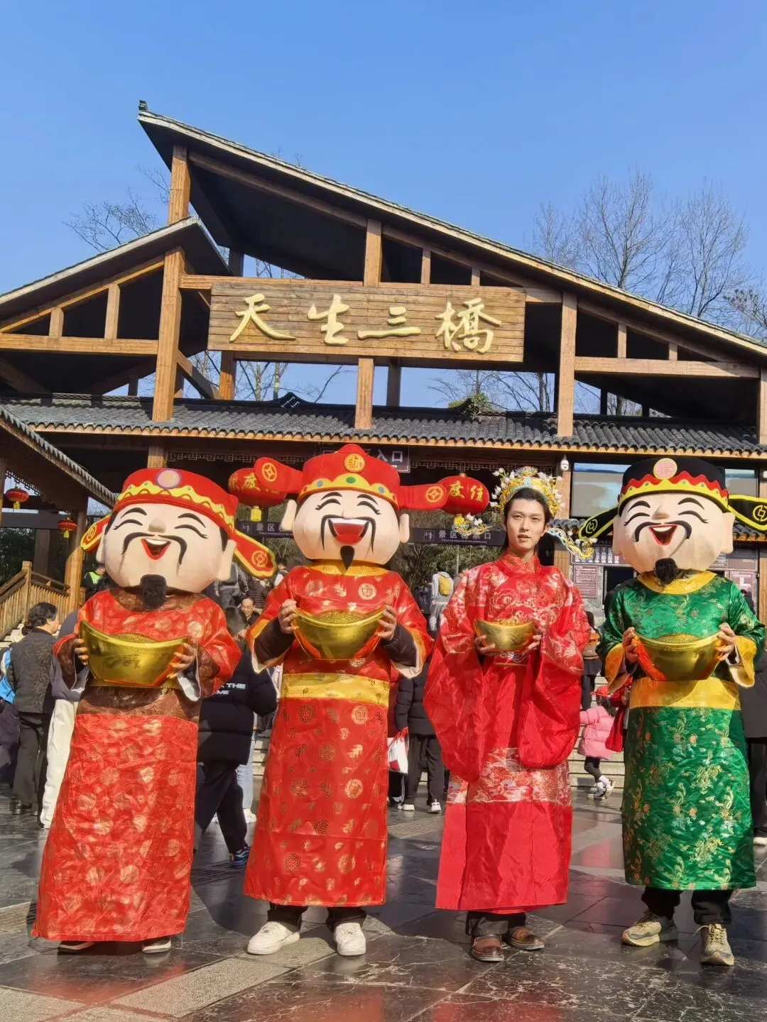 踏入天生三桥,这里是你今日的“福气江湖”。身着红袍、手持金元宝的“财神爷”将在亿万年形成的峡谷之中巡游,与大家亲密互动、派发寓意吉祥的“金币”和糖果。