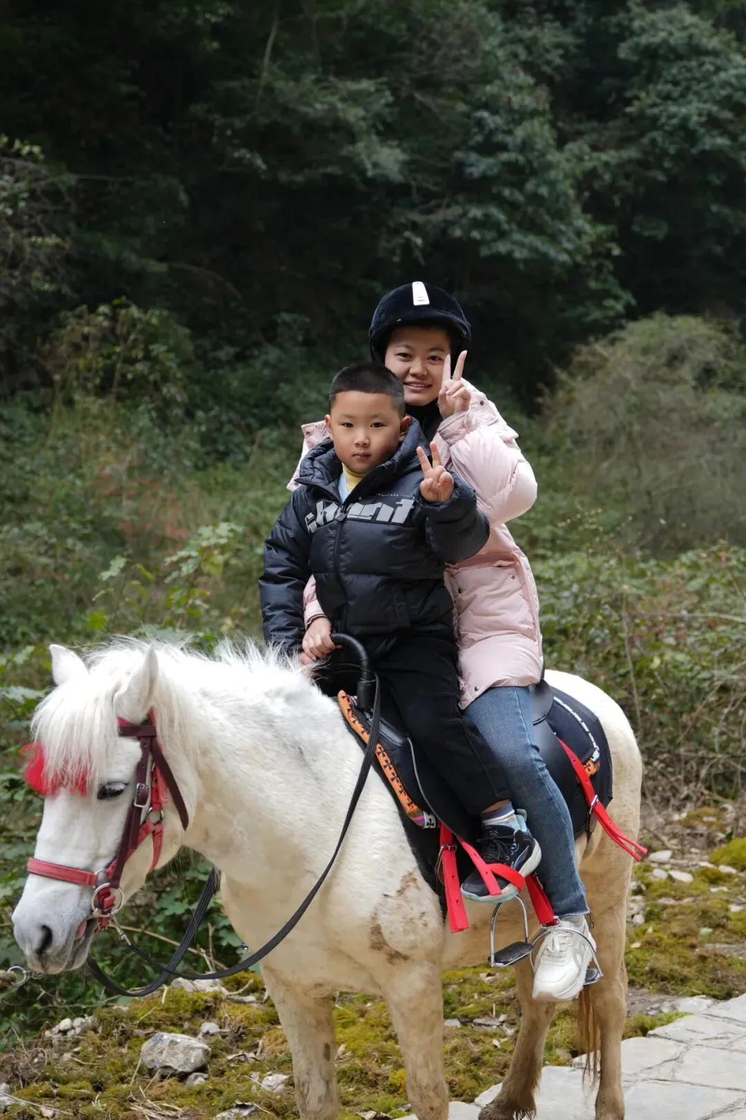 骑着骏马穿行在幽深的峡谷间,寓意着新的一年事业“一马当先”,财富“马到成功”。