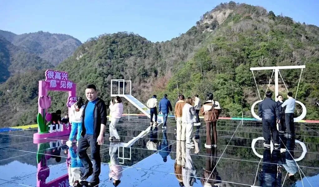 在尚湖镇风崖谷景区内,春节前亮相的“天空之镜”也成为这个假期的“流量担当”。驻足镜面观景台,蓝天白云与连绵青山交相辉映、倒影成趣,游客宛若漫步云端,不少人由衷赞叹“仿佛一伸手就能触碰到云朵”。“投资超千万元打造的这处景点,一推出就迅速点燃了游客的热情。”风崖谷景区负责人张向宇表示,今年春节天气好,景区游客量比往年同期翻番。
