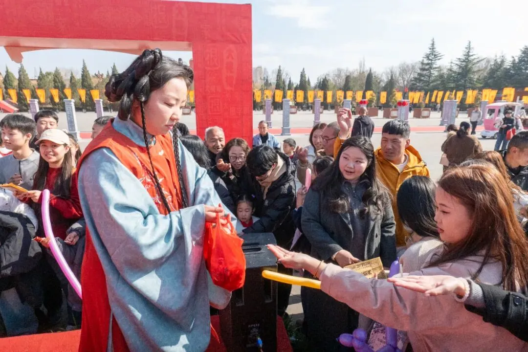 今年春节,景区以“马到成功 回家过年”为口号,精心策划了9项主题特色互动活动与30余场精彩演出,将根祖文化与年俗传统深度融合,同时,开发国潮打卡点,丰富旅游综合业态,开街槐树里商业街区,吸引了很多家庭游停下来、慢下来沉浸式游玩。