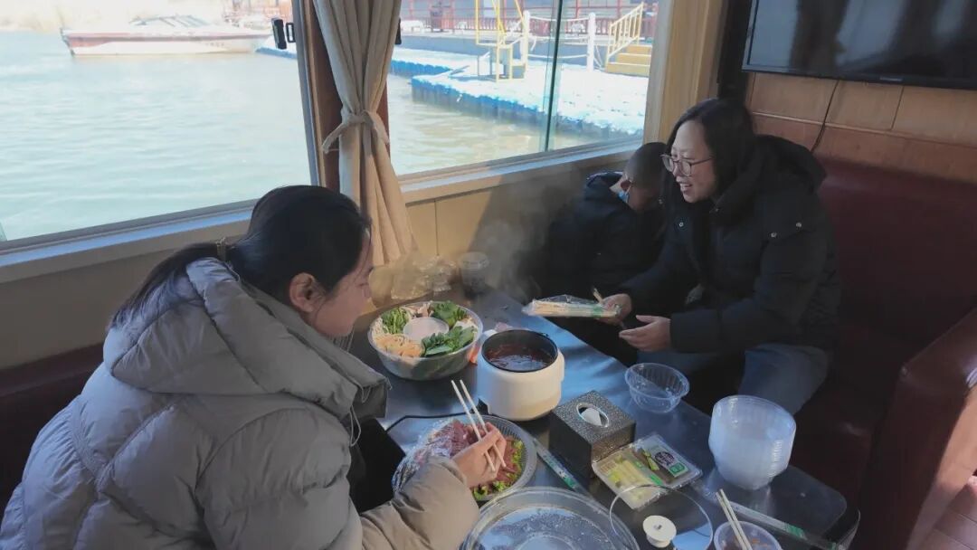 坐上游船,热气腾腾的火锅香气扑鼻而来,吸引了许多游客专程前来体验,船行在清澈的黄河上,窗外是峡谷风光,桌上火锅热气腾腾,工作人员在现场引导游客有序登船,确保每趟航次正常运行。