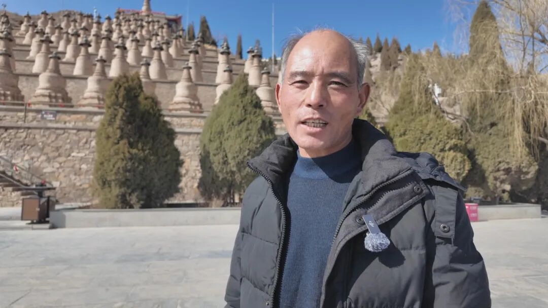 在一百零八塔景区,祈福活动正有序进行,游客们参观游览一百零八塔并写下新年心愿悬挂在指定区域。
