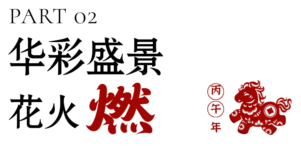鱼灯巡游灵动穿梭,上善湖上,灯火盛典璀璨夺目,中幡、火魔方、火壶轮番登场。非遗打铁花震撼上演,铁水腾空而起,在上善湖上绘就“火树银花不夜天”的中式浪漫。千灯祈福,心愿寄福,许下新春最真挚的美好期盼!