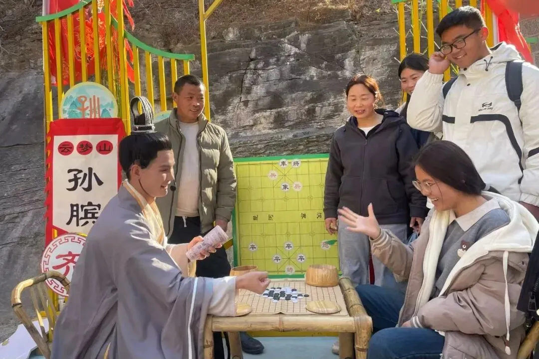 云梦山的年味,藏着战国风云的古韵,也透着新潮玩法的趣味。“鬼谷子携弟子”特色迎宾礼庄重启幕,一步踏入战国时空;与苏秦、孙膑等历史名人NPC斗智对弈,沉浸式感受历史魅力。投壶、木射等传统雅趣体验趣味十足,集齐福印即可兑换巨型糖葫芦,甜甜蜜蜜迎新春。